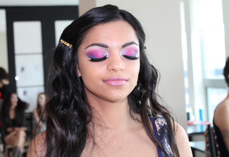 I was able to go backstage at the Bika Swimwear fashion show where I chatted with some of the models while they were in hair and makeup mode. Bright eyelids, big lashes, and braids were out in full force on this runway.
