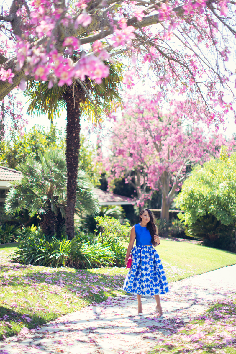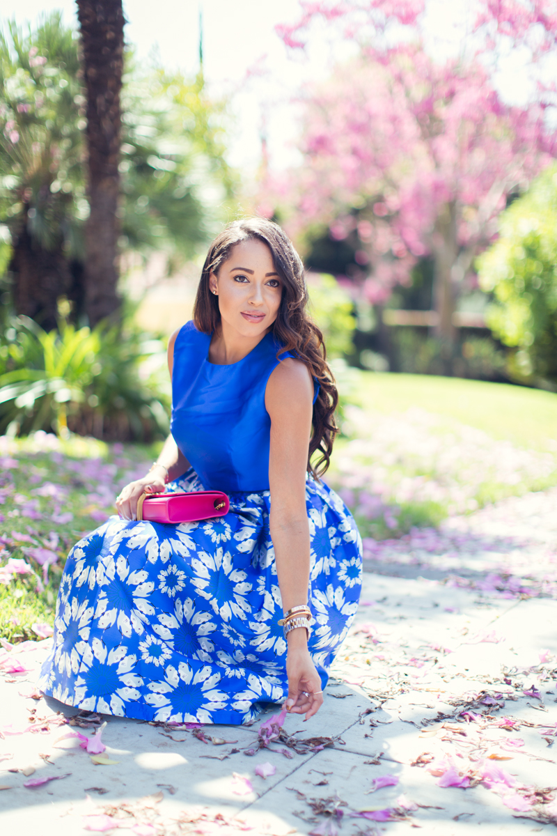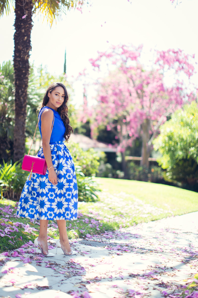 2. Beautiful! I like the prints on the skirt and the touch of pink with the bag. Great post.