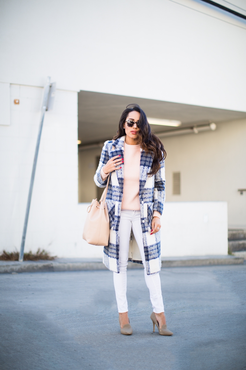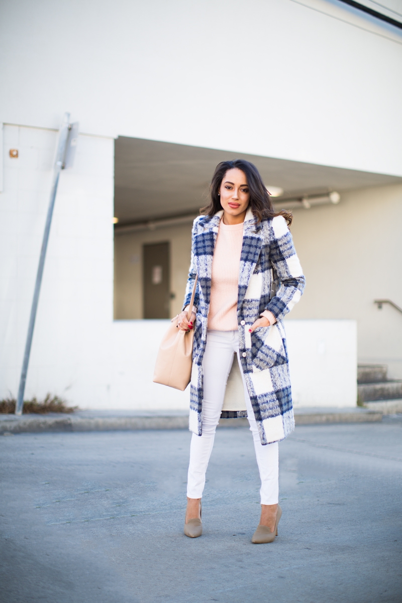 It’s true, the holiday season is officially behind us. I know, I don’t like it anymore than you do but the show must go on. It seems like everything after November just kind of flew by. The worst part is that now I can’t pig put on all of my favorite desserts morning, noon and night. C’est la vie. We are still getting to enjoy the crisp winter weather though and it was easy to slip into lots of cozy layers to stay warm. I recently popped in to Forever 21 and I went a little crazy – I almost forgot how amazing their prices are! I got this coat for $30! I styled it with a light and bright color palette pairing pink, blue and white.